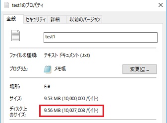 任意のファイルをスパース可能な設定し、スパース状態にする。