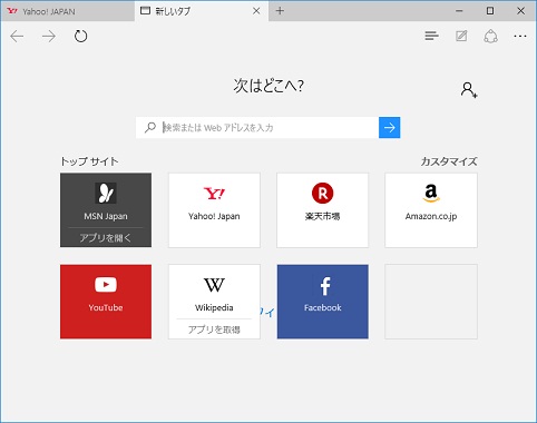Windows10でMicrosoft Edgeの新しいタブでページを開いた時に表示するページの設定方法